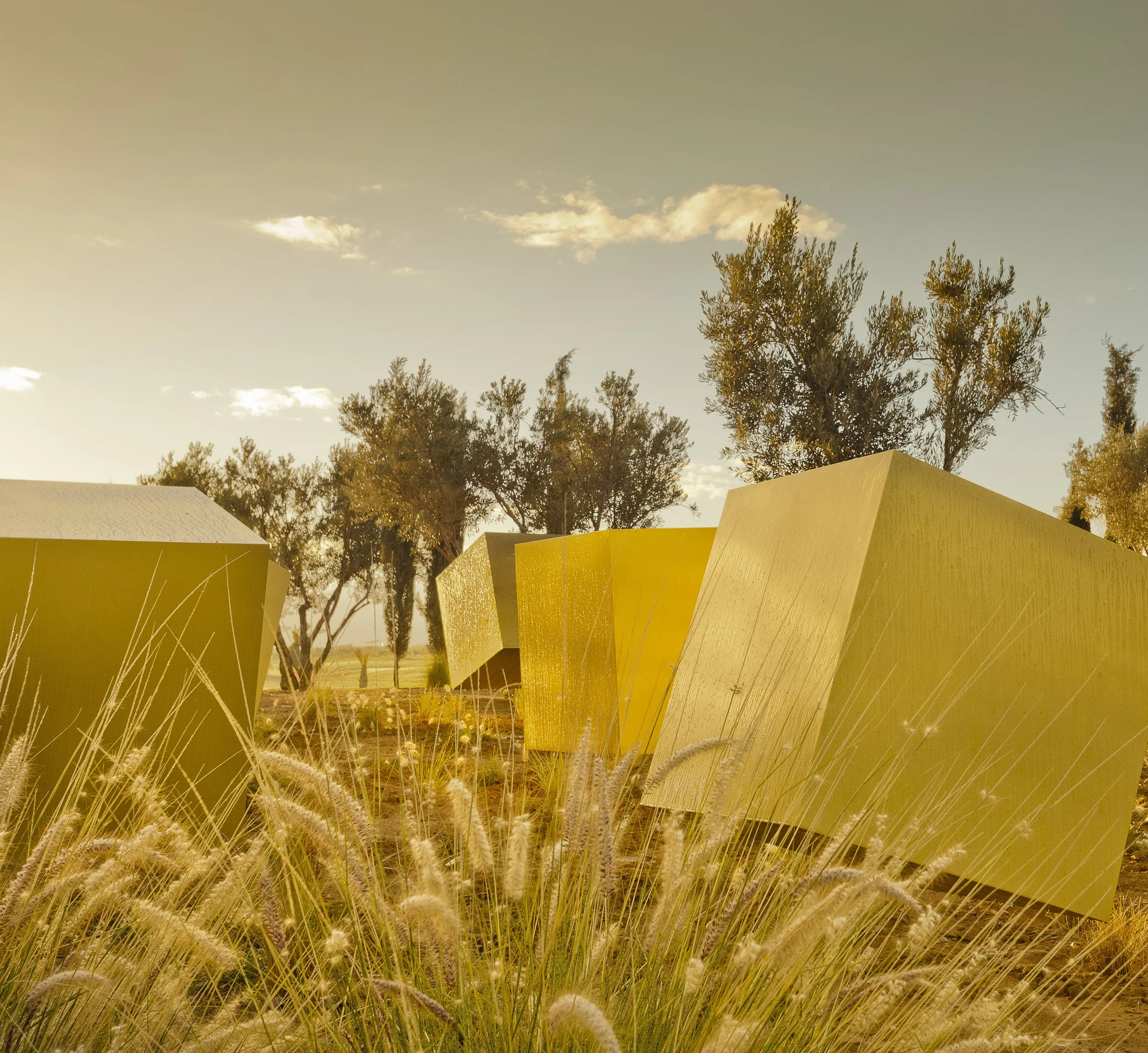 Dans ce dialogue permanent entre art et nature, se côtoient installations colorées, sculptures monumentales et sentiers sinueux bordés de plantes. Ce jardin unique offre une grande variété d’arbres, de cactus, de succulentes et de fleurs avec les montagnes de l’Atlas en toile de fond.